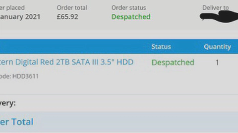 Here’s the original order for the hardware in my NAS. You’ll notice it has four Seagate desktop hard drives. I think they’ve all died now, most of them failing to power up after being switched off due to sticking spindles.